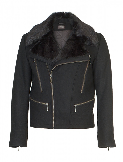 z mieszanki wełny. Pikowana wewnętrzna podszewka z ociepleniem. Detale: wykładane klapy, asymetryczne zapięcie na zamek, mankiety regulowane zamkami, cztery kieszenie z przodu na zamek i wewnętrzna kieszonka na dokumenty.