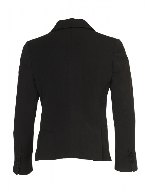 Czarna marynarka jednorzędowa z kołnierzem jednostronnie wykończonym zamkiem.