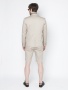 Jednorzędowa beżowa marynarka bawełniana, zapinana na dwa guziki. W całości na satynowej podszewce. Kieszeń na przednim panelu i dwie kieszenie z klapami z przodu. Pojedyncze rozcięcie z tyłu. Mankiety zapinane na cztery guziki. Zdobienie na lewej klapie w czarnym kolorze.