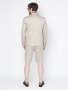 Bawełniane shorty w kolorze piaskowym. Cztery kieszenie. Zaprasowane kanty z przodu. Chowane zapięcia w postaci guzika, haftki i rozporka na zamek.